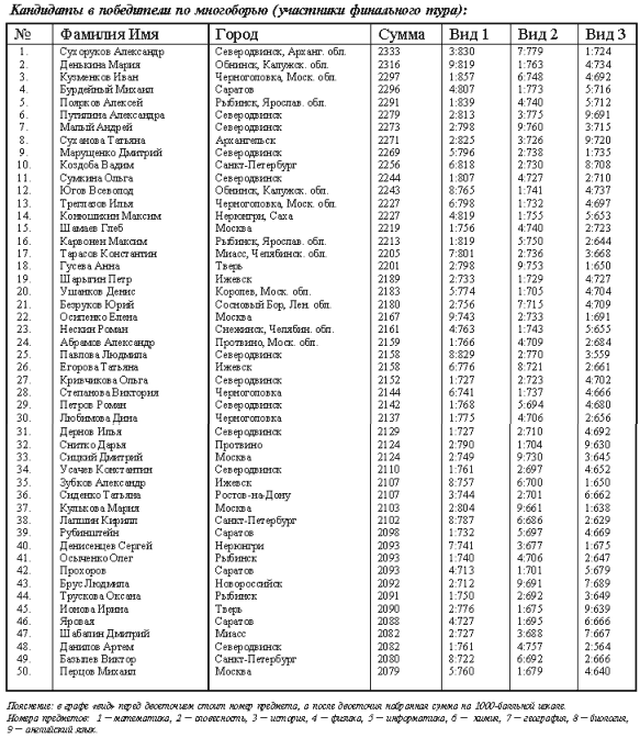 (это 10 процентов лучших по каждому предмету)